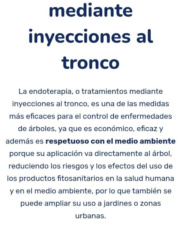 - Mayor persistencia del producto en el interior del árbol, obteniéndose una mayor eficacia de los tratamientos. Basta con una o dos inyecciones anuales.